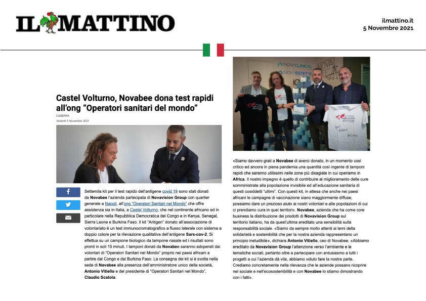Novabee dona test rapidi a Operatori Sanitari del mondo